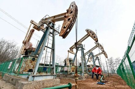 ▲山西華新燃?xì)饧瘓F工作人員在山西省沁水縣河頭村的一處煤層氣抽采現(xiàn)場進行井口維護。