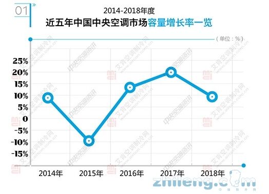 2018年,國民經(jīng)濟(jì)運(yùn)行保持在合理區(qū)間,總體平穩(wěn)、穩(wěn)中有進(jìn)。國家統(tǒng)計局?jǐn)?shù)據(jù)顯示,初步核算,全年國內(nèi)生產(chǎn)總值900309億元,按可比價格計算,比上年增長6.6%,實現(xiàn)了6.5%左右的預(yù)期發(fā)展目標(biāo)。分季度看,一季度同比增長6.8%,二季度增長6.7%,三季度增長6.5%,四季度增長6.4%。分產(chǎn)業(yè)看,第一產(chǎn)業(yè)增加值64734億元,比上年增長3.5%;第二產(chǎn)業(yè)增加值366001億元,增長5.8%;第三產(chǎn)業(yè)增加值469575億元,增長7.6%。 與此同時,我們也要看到,經(jīng)濟(jì)運(yùn)行穩(wěn)中有變、變中有憂,外部環(huán)境復(fù)雜嚴(yán)峻,經(jīng)濟(jì)面臨下行壓力。對于國內(nèi)中央空調(diào)行業(yè),2018年最明顯的一個變化就是家裝零售行業(yè)銷售的不景氣導(dǎo)致家裝零售市場的增長放緩至個位數(shù),國內(nèi)中央空調(diào)市場整體容量及增長率也受到影響。根據(jù)艾肯空調(diào)制冷網(wǎng)統(tǒng)計,2018年度中國中央空調(diào)市場整體容量逼近1000億元,與2017年度接近20%的增長率相比,2018年度中國中央空調(diào)市場的增長率已經(jīng)低于10%。(見圖1)