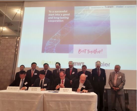 6月6日,海爾集團與BWT集團在德國簽訂戰(zhàn)略合作協(xié)議,雙方整合各自在凈水技術(shù)研發(fā)、大規(guī)模定制、觸點網(wǎng)絡(luò)等領(lǐng)域的優(yōu)勢,以資本合作為紐帶,強強聯(lián)合,共建全球一流水生態(tài),為中國用戶定制高端凈水解決方案。據(jù)悉,雙方合資成立的制造工廠將落戶青島西海岸新區(qū)中德生態(tài)產(chǎn)業(yè)園。 中國駐杜塞爾多夫總領(lǐng)事馮海陽、青島市委常委、市委秘書長祝華、杜賽爾多夫副市長Wolfgang Scheffler、BWT集團CEO Andreas Weissenbacher、海爾集團副總裁解居志等出席了此次簽約儀式。杜塞爾多夫工商會榮譽主席、德國電信監(jiān)事會主席李寧雅,杜塞爾多夫市副市長謝福剛,北威州經(jīng)濟部國際事務(wù)局局長凱爾克曼,德國亞太經(jīng)濟委員會首任主席、西門子前董事長兼CEO馮必樂,BWT集團董事長Weissenbacher Andreas先后致辭,并見證雙方簽約。