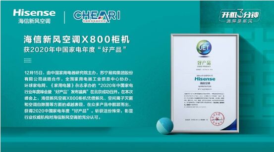 昨天,在中國家用電器研究院主辦,全國家用電器工業(yè)信息中心協(xié)辦的“2020年中國家電行業(yè)年度峰會暨‘好產(chǎn)品’發(fā)布盛典”上,海信新風空調X800柜機榮獲2020中國家電“好產(chǎn)品”獎。今天,海信新風空調X800掛機又獲得第12屆中國高端家電及消費電子“紅頂獎”提名。
