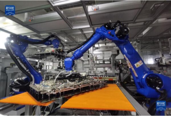 ▲在位于青島的海信視像智能車間的生產(chǎn)線上,機(jī)器人對(duì)液晶面板和背光板自動(dòng)化精準(zhǔn)卡合