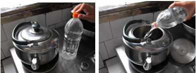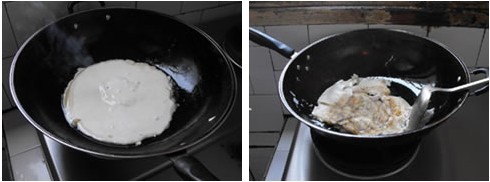 實(shí)驗(yàn)者將調(diào)好的面糊倒入平底鍋,適當(dāng)加熱后,翻邊。筆者發(fā)現(xiàn)鍋?zhàn)又行牟课坏氖軣岷芫鶆,煎餅中間沒(méi)有部分燒焦部分夾生的現(xiàn)象產(chǎn)生。 第三,聚能圈設(shè)計(jì),廢氣更少
