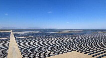 墨西哥科阿韋拉州(Coahuila)的沙漠安裝了230萬(wàn)個(gè)太陽(yáng)能板,遠(yuǎn)望宛如浩瀚黃沙中出現(xiàn)了一片深藍(lán)色海洋。這個(gè)拉丁美洲最大的太陽(yáng)能發(fā)電園斥資6億5000萬(wàn)美元(約8億6000萬(wàn)新元)建造,其面積相當(dāng)于2200個(gè)足球場(chǎng),今年全面投入運(yùn)作后所生產(chǎn)的電力足以供應(yīng)130萬(wàn)戶家庭。墨西哥希望,到了2024年,能通過(guò)清潔能源生產(chǎn)全國(guó)43%的電力供應(yīng)。