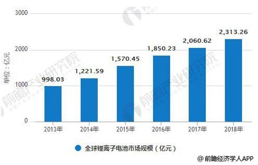 2013-2018年全球鋰離子電池市場規(guī)模統(tǒng)計情況及預測