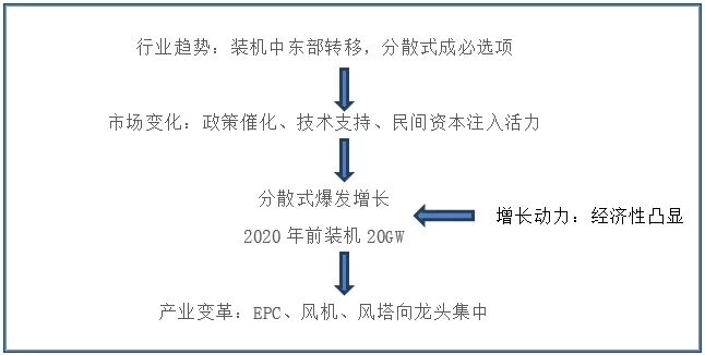 分散式風(fēng)電發(fā)展元年啟動(dòng) 相關(guān)政策的逐步完善,為分散式風(fēng)電打通了政策壁壘,行業(yè)正式迎來分散式風(fēng)電大發(fā)展,分散式風(fēng)電成為風(fēng)電行業(yè)的未來重心之一。 由新能源大規(guī)模快速集中式開發(fā)導(dǎo)致的“三北”地區(qū)的棄風(fēng)限電問題存在已久,盡管2017年以來已有所緩解,但是棄風(fēng)問題仍持續(xù)存在。當(dāng)前我國風(fēng)電建設(shè)重心逐漸轉(zhuǎn)移向東部、中部地區(qū),分散式風(fēng)電也迎來發(fā)展機(jī)遇期。