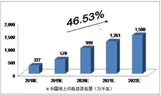 ▲中投顧問對(duì)2018-2022年中國海上風(fēng)電總裝機(jī)量預(yù)測(cè)(數(shù)據(jù)來源:中投顧問產(chǎn)業(yè)研究中心)