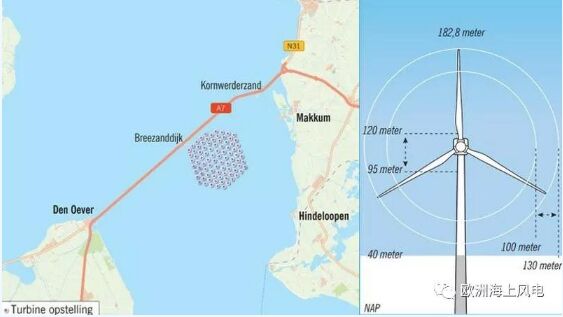 Fryslan風(fēng)電項目得到了荷蘭弗里斯蘭省5億歐元的資金支持,早在去年8月份就將西門子歌美颯作為首選風(fēng)機(jī)供應(yīng)商。預(yù)計將安裝89臺型號為SWT-4.3-130 的直驅(qū)風(fēng)機(jī)。Van Oord公司負(fù)責(zé)基礎(chǔ)和海纜的設(shè)計、制造和安裝,并將提供風(fēng)機(jī)安裝服務(wù)。 該風(fēng)場預(yù)計今年3月份做出最終投資決策,并在年內(nèi)開工建設(shè),到2021年全面投產(chǎn)發(fā)電。 艾瑟爾湖(Ijsselmeer)面積1100平方公里,平均深度5~6米,原是荷蘭中部的內(nèi)陸海灣。上世紀(jì)二十年代,荷蘭開始建設(shè)須德海,筑起長29公里、寬90米、高出海面7米的攔海大壩。1933年,阿夫魯戴克大堤(Afsluitdijk)將須德海隔開后,形成了人工湖。艾瑟爾湖成為這圍海造田的產(chǎn)物,是現(xiàn)在西歐最大的湖泊。1975年豪特里布大堤落成后,又將原來的艾瑟爾湖分隔為現(xiàn)在的艾瑟爾湖、馬爾肯湖兩部分。著名電影《敦刻爾克》中“月關(guān)石號”游艇的戲碼都是在這座湖上拍攝的。 開發(fā)商在建設(shè)風(fēng)場同時,還要在阿夫魯戴克大堤以南建立一個自然保護(hù)區(qū)島嶼,島嶼陸地面積2公頃,水下面積25公頃。風(fēng)場建設(shè)期間,島嶼可以當(dāng)作工作平臺。后期,它將改造成為保護(hù)區(qū),為魚類和鳥類棲息及覓食提供場所。 “海風(fēng)”漲姿勢: 我們平常提到最多的海上風(fēng)電實際屬于“離岸風(fēng)電”的一種,除此以外,還涵蓋一些內(nèi)陸水域,如胡泊,以及峽灣、有遮蔽的沿海地區(qū)水域建造的風(fēng)電場。