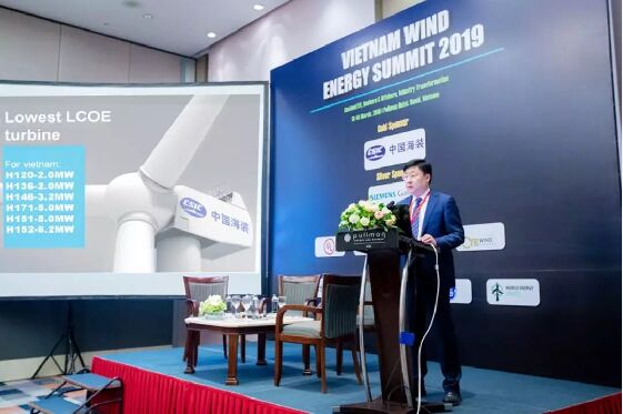 中國(guó)海裝副總經(jīng)理張曉陽(yáng)在會(huì)上作“中國(guó)海裝助力越南風(fēng)電市場(chǎng)快速發(fā)展”主旨演講,對(duì)處于快速發(fā)展期的越南風(fēng)電市場(chǎng)做了深度分析,并結(jié)合中國(guó)海裝在低LCOE設(shè)備、引領(lǐng)海上風(fēng)電、整體解決方案、智慧能源四個(gè)方面的豐富實(shí)踐提出了助力越南風(fēng)電行業(yè)發(fā)展的可行方案。