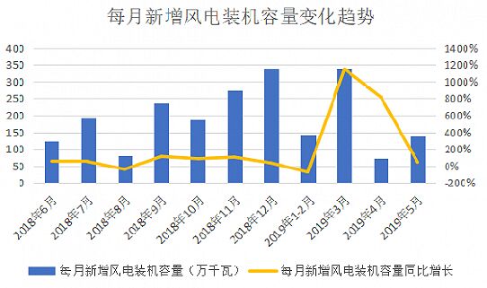 6月18日,國(guó)家能源局發(fā)布1-5月份全國(guó)電力工業(yè)統(tǒng)計(jì)數(shù)據(jù)。數(shù)據(jù)顯示,1-5月全國(guó)新增風(fēng)電裝機(jī)容量688萬(wàn)千瓦。經(jīng)計(jì)算,5月新增裝機(jī)規(guī)模為138萬(wàn)千瓦,同比增加44%,風(fēng)電行業(yè)裝機(jī)加快,搶裝號(hào)角已經(jīng)吹響。