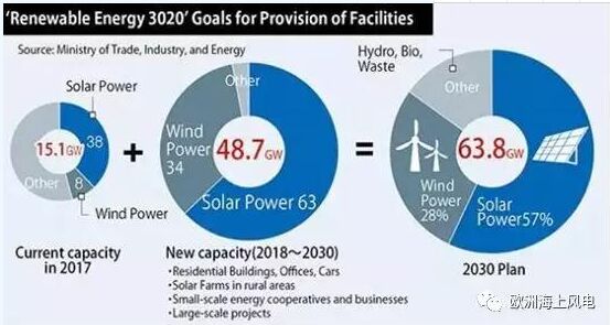 縱觀全球海上風(fēng)電市場(chǎng),歐洲地區(qū)裝機(jī)容量獨(dú)占鰲頭,但亞太地區(qū)絕對(duì)是未來最具潛力的市場(chǎng)。國(guó)際能源署(International Energy Agency)在其發(fā)布的報(bào)告中預(yù)測(cè),到2050年,全球海上風(fēng)電總裝機(jī)容量有望達(dá)到1000GW,其中,亞太地區(qū)占據(jù)了驚人的613GW! 而在亞洲的各個(gè)國(guó)家中,韓國(guó)無疑是最具潛力的新興市場(chǎng)——韓國(guó)政府的“可再生能源3020實(shí)施計(jì)劃”就是最好的證明。 規(guī)劃& 資源 韓國(guó)擁有良好的資源條件,盡管風(fēng)速不高,但在東海與日本海海域仍有巨大的開發(fā)潛力。目前,韓國(guó)政府設(shè)定了一個(gè)到2040年將可再生能源的比例從目前的7%提高到35%的目標(biāo)。其中,更有“可再生能源3020項(xiàng)目”的詳細(xì)目標(biāo)。 2017年末,韓國(guó)政府提出“可再生能源3020實(shí)施計(jì)劃”,旨在實(shí)現(xiàn)能源轉(zhuǎn)型,其目標(biāo)是到2030年,可再生能源占總能源消耗比例達(dá)到20%。為此需在2030年前新增4870萬千瓦可再生能源裝機(jī)容量,最終達(dá)到6380萬千瓦的總裝機(jī)規(guī)模,其中風(fēng)電計(jì)劃占比28%,既1770萬千瓦(其中海上風(fēng)電計(jì)劃約1300萬千瓦)。