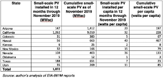 截至2019年11月,美國太陽能資源最豐富的10個州增加了1872兆瓦的小型太陽能發(fā)電,比2018年略多。盡管加州人口只占該地區(qū)的40%,但該地區(qū)有三分之二的人安裝了太陽能系統(tǒng)。這里指的小型太陽能系統(tǒng)為小于1兆瓦的項(xiàng)目。 其中夏威夷人均累計小規(guī)模太陽能的主導(dǎo)地位,加利福尼亞州排名第二,亞利桑那州排名第三。 總體而言,十個州中有六個州的人均小規(guī)模太陽能超過了全國平均水平69瓦。 政策目標(biāo) 以下是太陽能倡導(dǎo)團(tuán)體制定的分布式太陽能2020年政策目標(biāo),從夏威夷和加利福尼亞開始。 夏威夷 夏威夷太陽能協(xié)會的執(zhí)行理事Will Giese提到 “目前,缺乏適當(dāng)?shù)膬r值流來鼓勵客戶采用能源儲存或需求響應(yīng)技術(shù)。要想在2045年之前實(shí)現(xiàn)100%的能源消耗,輸贏取決于光伏+存儲等分布式能源。我們知道,分布式能源資源為所有納稅人創(chuàng)造了價值,我們已經(jīng)看到,從2011年到2018年,夏威夷的平均電費(fèi)減少了,盡管電費(fèi)保持不變。是時候把這個價值寫在紙上了,并開始構(gòu)建我們一直在討論的分配網(wǎng)格。他預(yù)計夏威夷很可能是第一個開發(fā)基于時間的費(fèi)率結(jié)構(gòu)(補(bǔ)償)網(wǎng)格服務(wù)的州之一。 加利福尼亞:加利福尼亞州SEIA的高級主管兼顧問表示,太陽能工業(yè)協(xié)會(SEIA)將倡導(dǎo)支持屋頂太陽能和儲能增長的電價,因?yàn)樵摻M織今年參與了六起公用事業(yè)費(fèi)案。 加利福尼亞州還將在今年審查其凈能源計量政策,而SEIA將倡導(dǎo)“承認(rèn)太陽能提供的各種好處的公平價格結(jié)構(gòu)”,并補(bǔ)充說SEIA希望確保增加太陽能+存儲的客戶 “因其系統(tǒng)提供的彈性優(yōu)勢而得到充分的贊譽(yù)。” SEIA也將“通過制定強(qiáng)有力且平衡的消費(fèi)者保護(hù)法規(guī)來確保該行業(yè)繼續(xù)以負(fù)責(zé)任的方式增長,從而使更多的客戶能夠使用太陽能! 亞利桑那州:Vote Solar注意到公用事業(yè)公司Arizonae已設(shè)定了到2030年實(shí)現(xiàn)45%的可再生能源和到2045年實(shí)現(xiàn)100%的清潔能源的目標(biāo),并要求亞利桑那州公司委員會(ACC)“將一項(xiàng)自愿性承諾轉(zhuǎn)化為全州性授權(quán) ,其中至少有10%來自本地的客戶擁有的太陽能裝置!痹摷瘓F(tuán)內(nèi)飾部總監(jiān)Art Terrazas說。 同樣, SUN呼吁ACC在2030年之前設(shè)定“具有約束力的50%可再生能源標(biāo)準(zhǔn)”,并削減10%的太陽能等分布式資源,該組織的亞利桑那州項(xiàng)目負(fù)責(zé)人Bret Fanshaw說 。 不同于其他州,州立法機(jī)關(guān)可能會制定可再生能源投資組合標(biāo)準(zhǔn),亞利桑那州憲法“授權(quán)[ACC]監(jiān)管公用事業(yè)”,并且“設(shè)定可再生能源目標(biāo)的能力已包含在此任務(wù)中,”溝通總監(jiān)Ben Delman解釋說 對于SUN。 SEIA的州事務(wù)高級主任Sara Birmingham說,SEIA正在“觀察(亞利桑那公共服務(wù))對可再生能源的新承諾是否也適用于幕后太陽能系統(tǒng)”,并補(bǔ)充說,SEIA將尋求“限制太陽能出口信貸的下降”。 新墨西哥州:Vote Solar“今年再次支持《社區(qū)太陽能法案》”,該組織的Interior West高級總監(jiān)Marta Tomic說。 她指出,該法案將為服務(wù)于低收入客戶的項(xiàng)目預(yù)留30%的新社區(qū)太陽能容量。 猶他州:SEIA的Sara Birmingham說,在公共服務(wù)委員會的一項(xiàng)訴訟中,SEIA“致力于保持住宅屋頂太陽能的出口率足以維持市場”。 其他州增加1.6吉瓦太陽能 去年,東南部的太陽能承包商增加了427兆瓦的小規(guī)模太陽能。 東北地區(qū)增加了800兆瓦; 中西部和北部Tier州的19個州增加了400 MW。 州計分卡 以下是根據(jù)美國能源情報署EIA-861M表格數(shù)據(jù)得出的10個陽光最充足的州記分卡: