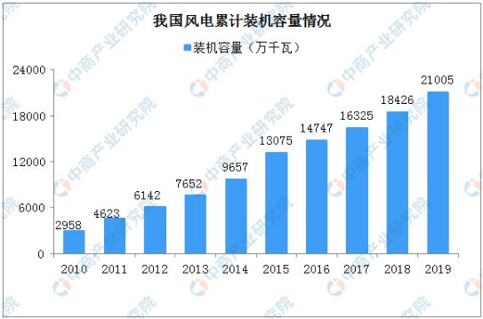 我國風(fēng)電建設(shè)始于20世紀(jì)50年代后期。1986年,我國第一座并網(wǎng)運行的風(fēng)電場在山東榮成建成,從此并網(wǎng)運行的風(fēng)電場建設(shè)進入了探索和示范階段,風(fēng)電發(fā)展的初始階段,我國風(fēng)電場裝機規(guī)模及單機容量都相對較小。1996年,我國風(fēng)電場進入擴大規(guī)模建設(shè)階段,風(fēng)電場裝機規(guī)模及單機容量顯著增長,最大裝機容量達到1,500kW.2003年9月,國家發(fā)改委出臺《風(fēng)電特許權(quán)項目前期工作管理辦法》,風(fēng)電場建設(shè)進入規(guī);皣a(chǎn)化階段。2006年,我國實施《可再生能源法》,風(fēng)電正式進入大規(guī)模開發(fā)應(yīng)用的階段。2010年,經(jīng)過多年爆發(fā)式增長,我國開始出現(xiàn)明顯的棄風(fēng)限電現(xiàn)象。2013年起,棄風(fēng)現(xiàn)象出現(xiàn)好轉(zhuǎn)。2015年,受風(fēng)電標(biāo)桿電價下調(diào)影響,風(fēng)電項目出現(xiàn)明顯搶裝潮,新增裝機規(guī)模明顯。2019年全國風(fēng)電累計裝機容量21005萬千瓦。
