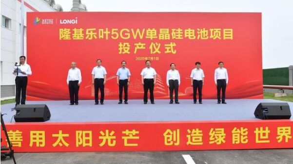 陜西隆基樂葉單晶電池工廠投產儀式在西安經濟技術開發(fā)區(qū)涇渭新城舉行。該項目是隆基在陜西地區(qū)第一個光伏電池項目,也是陜西地區(qū)單體最大的高效電池工廠項目,主要從事高效率單晶硅電池片的研發(fā)、生產與銷售。項目占地面積約278畝,總投資超過65億元,達產后可實現(xiàn)年產5GW高效率單晶硅電池片,年產值超100億元,新增就業(yè)將超過2000人。
