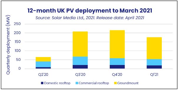 根據(jù)英國(guó)太陽(yáng)能協(xié)會(huì)的數(shù)據(jù)顯示,英國(guó)太陽(yáng)能產(chǎn)業(yè)在第一季度增加了175兆瓦的太陽(yáng)能發(fā)電能力,使該國(guó)的累計(jì)光伏裝機(jī)容量(PV)增至14,000兆瓦以上。