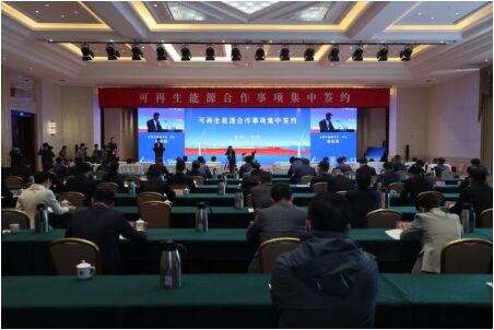 在當日舉行的可再生能源合作事項集中簽約儀式上,22個項目集中簽約,其中線下項目16個、線上項目6個,總簽約額353.29億元。