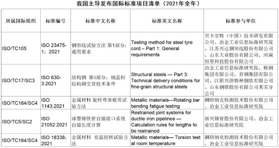 2022年3月8日,市場監(jiān)管總局標準創(chuàng)新管理司公開了2021年ISO發(fā)布的由我國牽頭制修訂的國際標準情況。其中,鋼鐵領(lǐng)域2021年主導發(fā)布了5項國際標準。