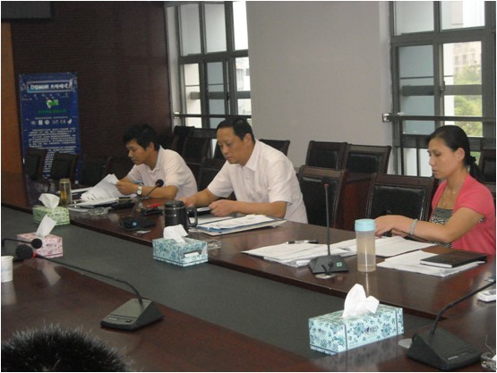 圖為會議現(xiàn)場,萬主任(左起第一位)、曾主任(左起第二位)、阮科長(右起第一位)等出席會議。