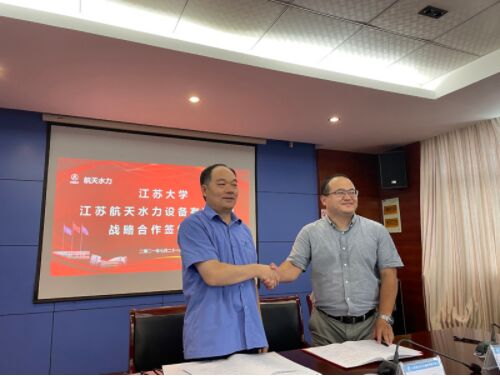 2021年7月21日,江蘇航天水力設(shè)備有限公司與江蘇大學(xué)簽署校企戰(zhàn)略合作協(xié)議,雙方將在校企合作、人才培養(yǎng)等方面繼續(xù)深入合作,共同推動(dòng)“產(chǎn)學(xué)研用”高質(zhì)量發(fā)展。江蘇大學(xué)黨委書記袁壽其、江蘇大學(xué)能動(dòng)學(xué)院黨委書記康燦、江蘇大學(xué)流體中心黨委書記張德勝等院校領(lǐng)導(dǎo)出席儀式。
