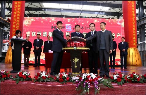 中國建設(shè)銀行吉林分行行長韓冬、吉林省山東商會會長張立功,東北電力大學(xué)黨委書記李國慶、恒濤集團(tuán)董事長方夕濤,共同啟動水晶球。 吉林恒濤鍋爐節(jié)能產(chǎn)業(yè)有限公司是由山東恒濤集團(tuán)于2015年投資新建的鍋爐制造智慧化工廠,作為永吉縣最大的招商引資項(xiàng)目——吉林恒濤鍋爐節(jié)能產(chǎn)業(yè)園,引進(jìn)智能化制造裝備及智能化管理信息系統(tǒng),著力打造全球電站服務(wù)產(chǎn)業(yè)智慧化工廠。項(xiàng)目總投資25.3億元,全部建成后,年可實(shí)現(xiàn)銷售收入41.3億元,實(shí)現(xiàn)稅收2億元。 此次一期項(xiàng)目的投產(chǎn),對進(jìn)一步延伸恒濤鍋爐產(chǎn)業(yè)鏈及推進(jìn)相關(guān)行業(yè)企業(yè)配套銜接起到積極作用。搪瓷熱管換熱器項(xiàng)目的開工建設(shè),將積極推進(jìn)吉林恒濤鍋爐節(jié)能產(chǎn)業(yè)園成為東北地區(qū)最大的節(jié)能鍋爐和零部件生產(chǎn)基地,吉林恒濤鍋爐節(jié)能產(chǎn)業(yè)有限公司成為中國最專業(yè)、最領(lǐng)先的鍋爐系列設(shè)備和節(jié)能設(shè)備推廣運(yùn)營商。 同時,永吉縣政府積極發(fā)揮橋梁紐帶作用,加速實(shí)現(xiàn)“政校企”深度合作共同發(fā)展。儀式上,恒濤集團(tuán)董事長方夕濤與東北電力大學(xué)副校長王建國共同簽署戰(zhàn)略合作協(xié)議!霸诟鞲咝、科研院所的大力支持下,縣企的技術(shù)研發(fā)和創(chuàng)新能力不斷增強(qiáng)。”永吉縣縣長金華表示,縣委、縣政府將堅(jiān)定不移地把與各高校的合作推向深入,全力營造校地合作的良好發(fā)展環(huán)境。 今年,永吉縣計劃開工5000萬元以上項(xiàng)目50個,其中億元以上項(xiàng)目30個。永吉縣各級各部門將緊密配合,在結(jié)合上做文章,在落實(shí)上下功夫,提高工作的針對性和實(shí)效性,確保項(xiàng)目落地見效。永吉縣將以此次開工建設(shè)為契機(jī),進(jìn)一步優(yōu)化產(chǎn)業(yè)結(jié)構(gòu),推動經(jīng)濟(jì)社會發(fā)展。