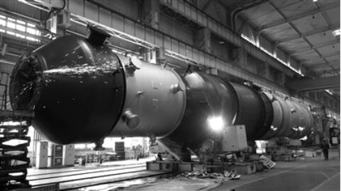 圖為余熱鍋爐在車間的加工現(xiàn)場