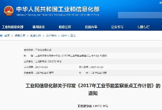 工業(yè)和信息化部關(guān)于印發(fā)《2017年工業(yè)節(jié)能監(jiān)察重點(diǎn)工作計(jì)劃》的通知
