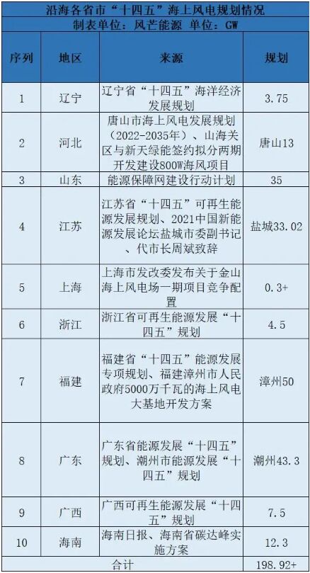 沿海各省市海上風(fēng)電“十四五”規(guī)劃陸續(xù)出爐。
