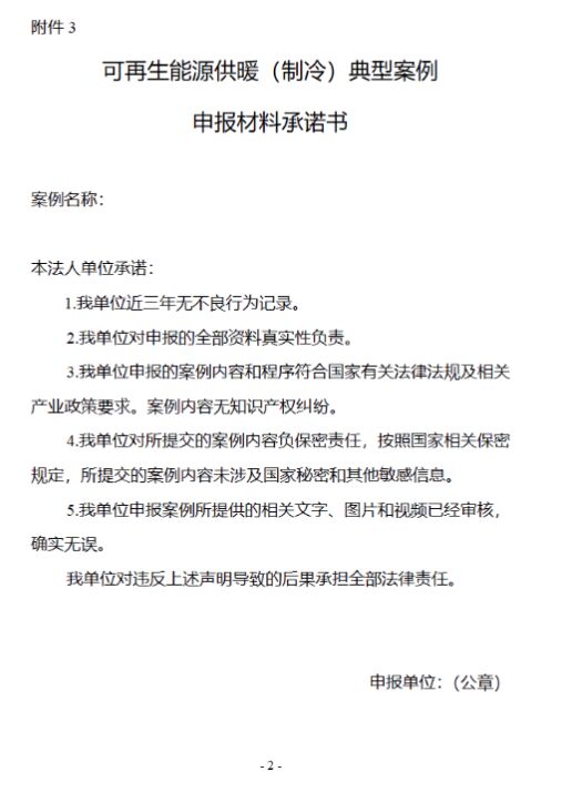 3.可再生能源供暖(制冷)典型案例申報(bào)材料承諾書(shū)