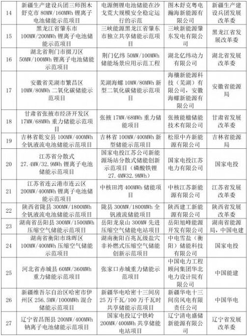 國家能源局綜合司關(guān)于公示新型儲(chǔ)能試點(diǎn)示范項(xiàng)目的通知