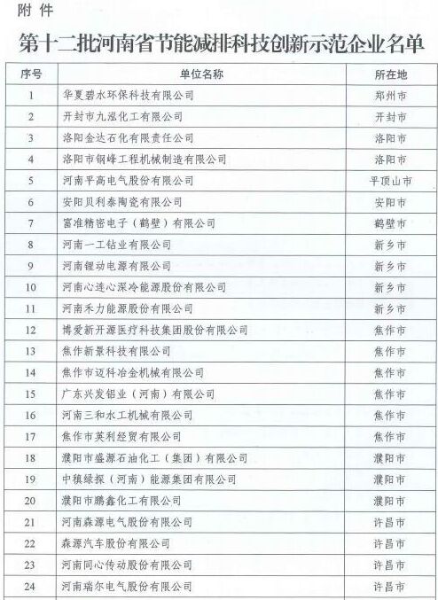 1月15日,河南省科技網(wǎng)發(fā)布關(guān)于培育第十二批河南省節(jié)能減排科技創(chuàng)新示范企業(yè)的通知。 根據(jù)相關(guān)要求,經(jīng)專家評審,省科學(xué)技術(shù)、發(fā)展和改革委員會、工業(yè)和信息化廳、生態(tài)環(huán)境廳、住房和城建設(shè)廳審核,決定華夏碧水環(huán)?萍加邢薰尽⒑幽掀礁唠姎夤煞萦邢薰、博愛新開源醫(yī)療科技集團(tuán)股份有限公司、河南森源電氣股份有限公司等49家企業(yè)為第十二批河南省節(jié)能減排科技創(chuàng)新示范企業(yè)。 通知指出,各示范企業(yè)要高度重視節(jié)能減排科技創(chuàng)新工作,進(jìn)一步加大科技投入,自主研發(fā)或引進(jìn)節(jié)能減排先進(jìn)技術(shù)、工藝和裝備,建立健全研發(fā)機(jī)構(gòu),推廣應(yīng)用節(jié)能減排成熟適用技術(shù)。