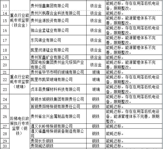 關(guān)于2021年貴州省國(guó)家工業(yè)專(zhuān)項(xiàng)節(jié)能監(jiān)察結(jié)果的公示