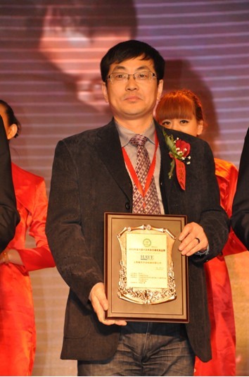 欣盛杯2012年度2012年度中國(guó)空調(diào)行業(yè)經(jīng)營(yíng)成就人物獎(jiǎng)--皇冠明珠獎(jiǎng)?lì)C獎(jiǎng)現(xiàn)場(chǎng) 瀚藝集團(tuán)總裁潘亞平接受頒獎(jiǎng)