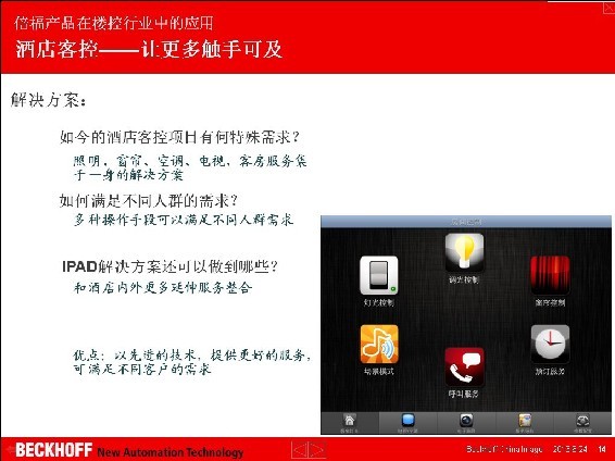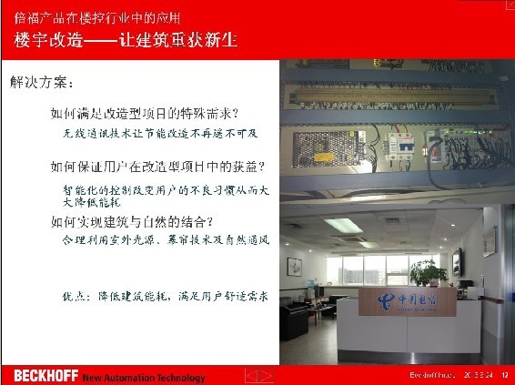 2013 年 6 月 9 日上午,由千家網(wǎng)主辦的“2013年綠色智能建筑運(yùn)維管理趨勢論壇”在廣州進(jìn)出口商品交易會展館A區(qū)6.1號館隆重舉辦,活動邀請了國內(nèi)外知名企業(yè)高層與業(yè)界精英針對“綠色智能建筑運(yùn)維管理趨勢”問題進(jìn)行了深入地探討與交流,與會人員各抒己見,共話當(dāng)前綠色智能建筑運(yùn)營、維護(hù)、管理中的問題及探討未來發(fā)展趨勢。 德國倍福自動化有限公司技術(shù)支持工程師包立應(yīng)邀出席了本次論壇,并在論壇上作了名為“倍福產(chǎn)品在樓控行業(yè)中的應(yīng)用——樓宇自動化新技術(shù)”的主題報(bào)告。報(bào)告介紹了倍福的智能樓宇行業(yè)產(chǎn)品和解決方案在樓宇自控、樓宇改造、酒店客控、智能照明等領(lǐng)域的技術(shù)優(yōu)勢和應(yīng)用情況,向現(xiàn)場與會的嘉賓展示了Beckhoff在智能樓宇行業(yè)的發(fā)展現(xiàn)狀和未來發(fā)展趨勢。 在樓宇自動化領(lǐng)域,倍福(Beckhoff)可全方位的設(shè)計(jì)集成式樓宇自動化方案:家居自動化照明、幕墻控制、操作和監(jiān)控、中央空調(diào)系統(tǒng)(HVAC)、獨(dú)立房間控制、遠(yuǎn)程維護(hù)和能源數(shù)據(jù)記錄等。由于其開放式接口是基于IT 和Windows 標(biāo)準(zhǔn)的,因此Beckhoff 基于PC和以太網(wǎng)的控制技術(shù)自然就非常適用于樓宇自動化領(lǐng)域。此外、開放性是倍福樓宇自動化的優(yōu)勢所在,這樣的優(yōu)勢不但體現(xiàn)在其開放式的控制架構(gòu)上,更體現(xiàn)在其集成性上。倍福所支持的通信協(xié)議豐富,EtherNet、TCP/IP、EnOcean、BacNet、RS232、RS485、LON、EIB/KNX、DALI、DMX、M-Bus,可滿足不同智能建筑的應(yīng)用需求。 本次論壇旨在促進(jìn)各方智慧碰撞,促進(jìn)行業(yè)的健康發(fā)展,加強(qiáng)各企業(yè)的交流合作,共同開發(fā)綠色智能建筑這一巨大的市場,實(shí)現(xiàn)各方共贏。智能樓宇行業(yè)生產(chǎn)企業(yè)、用戶、工程商、集成商等業(yè)界人士歡聚一堂,就業(yè)內(nèi)一些熱點(diǎn)問題進(jìn)行深度探討,并根據(jù)目前綠色建筑節(jié)能的現(xiàn)狀,剖析了綠色智能建筑在運(yùn)營、維護(hù)和管理中遇到的問題,共同展望了智能樓宇行業(yè)未來的發(fā)展遠(yuǎn)景。