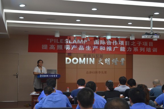 2013年7月18日下午,由中國照明電器協(xié)會副理事長王卓主持,總參謀部63所李先栗、上海時代之光照明電器檢測有限公司裘繼紅、國家電光源質(zhì)量監(jiān)督檢驗中心北京站萬婧等電光源行業(yè)專家來到荊州市大明燈業(yè)有限公司,對該公司全體行政管理人員和技術(shù)人員進行了為時三個小時的培訓(xùn)。 王卓副理事長首先對照明行業(yè)的發(fā)展趨勢進行了介紹。她說,隨著“十城萬盞” 、“中國逐步淘汰白熾燈路線圖”等政策的發(fā)布,節(jié)能燈取代白熾燈已經(jīng)是必然的趨勢,大明燈業(yè)抓住了這一重大歷史機遇,加強對節(jié)能燈的研發(fā)和生產(chǎn),具有非常光明的前景。