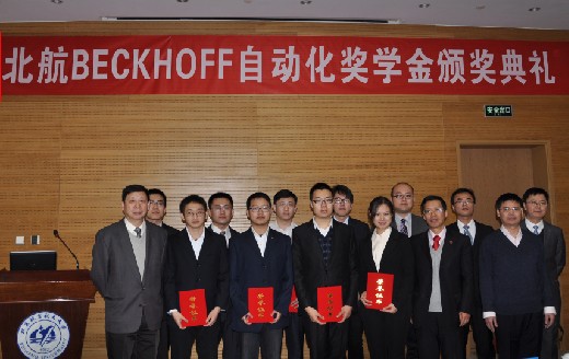 [2013年12月18日,中國] 2013年12月17日, “北航Beckhoff自動化獎學(xué)金頒獎典禮”在北京航空航天大學(xué)成功舉行。來自Beckhoff中國區(qū)的董事總經(jīng)理梁力強(qiáng)、ETG中國區(qū)代表范斌,與北航機(jī)械工程及自動化學(xué)院的郇極教授、周正干副院長、劉艷強(qiáng)博士共同出席了本次頒獎典禮,并為北航的優(yōu)秀學(xué)生頒發(fā)了獎學(xué)金,對他們在過去一年中所取得的科研成果進(jìn)行表彰。 郇極教授首先回顧了自2005年以來與Beckhoff的合作歷史,雙方合作涉及到技術(shù)交流、人才培養(yǎng)、共建實(shí)驗(yàn)室等多個(gè)層面,是校企合作實(shí)現(xiàn)雙贏的成功范例。獲得Beckhoff獎學(xué)金的同學(xué)不僅學(xué)習(xí)成績名列前茅,還取得了有創(chuàng)意和價(jià)值的研究成果。隨后,郇極教授宣讀了第一屆“Beckhoff自動化獎學(xué)金”獲獎學(xué)生名單,周正干副院長與梁力強(qiáng)總經(jīng)理共同為10名獲獎學(xué)生頒獎。 梁總對獲獎學(xué)生表示了祝賀,并發(fā)表致辭,他表示,“Beckhoff一直十分重視自己的社會責(zé)任,致力于通過發(fā)展教育來促進(jìn)技術(shù)創(chuàng)新和社會進(jìn)步。我們與北航開展了深入合作,不僅為北航機(jī)械學(xué)院提供了自動化實(shí)驗(yàn)平臺,還將EtherCAT技術(shù)中心和一致性測試中心(ETC)設(shè)立在此,我們非常希望看到自動化行業(yè)人才輩出,同時(shí),也歡迎莘莘學(xué)子到Beckhoff來實(shí)現(xiàn)自己的抱負(fù)! 會上,周正干副院長代表學(xué)院感謝Beckhoff對機(jī)械學(xué)院的大力支持,希望雙方在更多方面展開積極合作。獲獎學(xué)生代表發(fā)表獲獎感言,表達(dá)了對Beckhoff公司的感謝。頒獎典禮結(jié)束后,Beckhoff技術(shù)主管向在場師生作了關(guān)于公司產(chǎn)品及技術(shù)的講座,與會人員在機(jī)械學(xué)院領(lǐng)導(dǎo)的陪同下參觀了獲獎學(xué)生的實(shí)驗(yàn)室。 Beckhoff在推動產(chǎn)學(xué)研合作方面一直不遺余力,每年投入250萬歐元用于支持和培養(yǎng)年輕人才。除北航外,Beckhoff中國還與山東大學(xué)、上海工程技術(shù)大學(xué)、同濟(jì)大學(xué)等其他多所高校開展了全方位的校企合作,助力我國制造業(yè)的快速發(fā)展和轉(zhuǎn)型升級。
