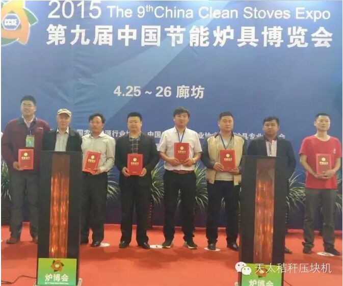 河北天太秸稈壓塊機(jī)榮獲第九屆爐博會優(yōu)秀產(chǎn)品證書