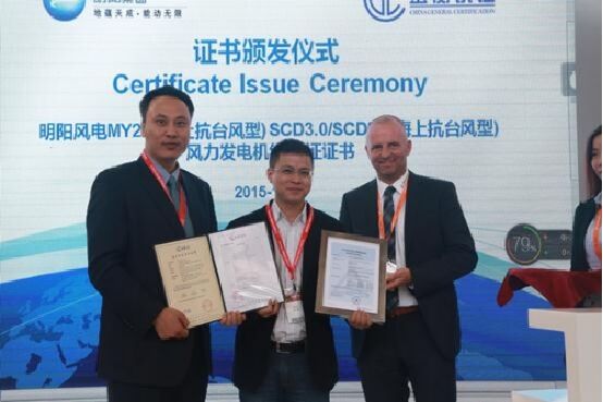 10月14日, 2015北京國際風(fēng)能大會暨展覽會隆重開幕。展會首日,備受市場關(guān)注的明陽風(fēng)電MY2.0-121風(fēng)力發(fā)電機(jī)組榮獲由北京鑒衡認(rèn)證中心與國際著名認(rèn)證機(jī)構(gòu)TUV-萊茵聯(lián)合頒發(fā)設(shè)計認(rèn)證證書。這意味著,明陽風(fēng)電正式開啟行業(yè)首創(chuàng)的一次認(rèn)證、兩張證書的認(rèn)證模式。 明陽風(fēng)電自2010年推出MY1.5-89風(fēng)機(jī)產(chǎn)品正式進(jìn)入低風(fēng)速市場以來,持續(xù)對低風(fēng)速風(fēng)機(jī)進(jìn)行技術(shù)研發(fā)和創(chuàng)新,先后研制并成功向市場推出MY2.0-110、MY2.0-121等一系列低風(fēng)速風(fēng)機(jī)產(chǎn)品,并且在云南、貴州、山西、安徽、湖南、湖北等低風(fēng)速地區(qū)得到廣泛運用。目前,由明陽風(fēng)電供貨的已建成和建設(shè)中的低風(fēng)速和超低風(fēng)速風(fēng)電場達(dá)70余個,裝機(jī)數(shù)量超過2000臺。 本次通過認(rèn)證的明陽MY2.0-121風(fēng)機(jī),是目前全球范圍內(nèi)2.0MW平臺葉輪直徑最大的風(fēng)機(jī)。該款機(jī)型嚴(yán)格按照IEC61400-1、IEC61400-22等標(biāo)準(zhǔn)設(shè)計出品,在低風(fēng)速和超級風(fēng)速區(qū)域具有高發(fā)電量等強(qiáng)大的競爭優(yōu)勢。 明陽風(fēng)電不僅加快低風(fēng)速、超低風(fēng)速機(jī)型開發(fā),而且以定制化設(shè)計理念滿足客戶的各種不同需求。按照風(fēng)電場特有的風(fēng)況特征、地形條件進(jìn)行定制化設(shè)計,在當(dāng)前風(fēng)電場設(shè)計中對機(jī)組固有參數(shù)的輸入、既定基礎(chǔ)設(shè)計模式中引入差異化的設(shè)計,在風(fēng)電場整體投資不增加的情況下提升發(fā)電量,實現(xiàn)風(fēng)電場整體經(jīng)濟(jì)效益的提升。風(fēng)機(jī)運行環(huán)境滿足海岸、潮間帶、低溫、超低溫、抗臺風(fēng)、高海拔等不同區(qū)域要求,客戶群覆蓋五大發(fā)電集團(tuán)和中廣核、三峽新能源、河北建投、中電建、神華等國內(nèi)主要風(fēng)電開發(fā)商。 同日,明陽風(fēng)電在展位上舉行了“低風(fēng)速風(fēng)電場的選型及定制化設(shè)計”主題技術(shù)推介會,就明陽風(fēng)電在低風(fēng)速區(qū)域風(fēng)電場的未來市場戰(zhàn)略、選型策略、低風(fēng)速風(fēng)機(jī)研發(fā)理念、風(fēng)電場定制化設(shè)計及效能提升等整體解決方案向參展各方人士進(jìn)行詳細(xì)介紹和說明。