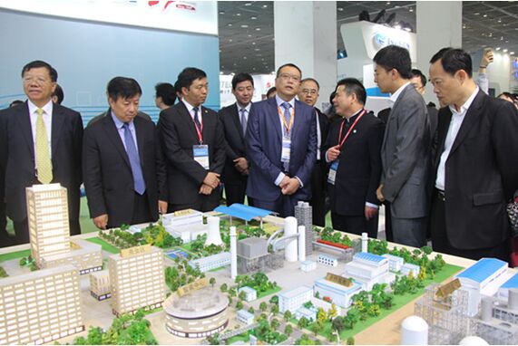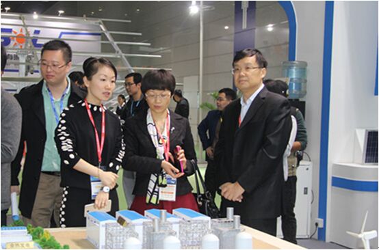 領(lǐng)導(dǎo)巡視遠(yuǎn)東智慧能源展臺 國家能源局新能源和可再生能源司副司長朱明(中)聽取 蔣錫培(右三)對智慧能源戰(zhàn)略規(guī)劃介紹