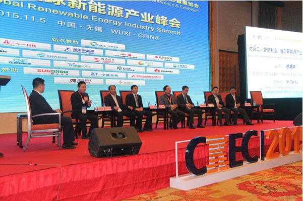 5日下午,大會組織了關(guān)于《智能制造,提升新能源產(chǎn)業(yè)質(zhì)量和效益》的對話環(huán)節(jié),無錫新能源商會理事長、十一科技常務(wù)副院長、華東區(qū)總裁徐湘華主持對話,蔣錫培與振發(fā)新能源科技發(fā)展有限公司副總裁張甲典;西安隆基硅材料有限公司董事長鐘寶申;浙江正泰新能源開發(fā)有限公司總經(jīng)理仇展煒;華為智能光伏電站解決方案總經(jīng)理許映童;中盛集團(tuán)常務(wù)副總裁郭振海;上能電氣有限公司副總經(jīng)理李建飛七位企業(yè)家代表出席對話。