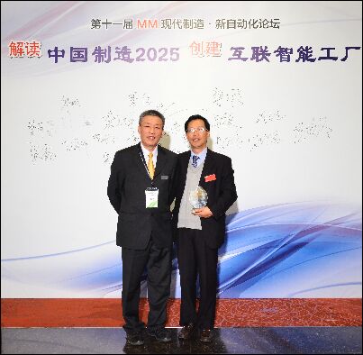 圖片注釋: 德國倍福中國區(qū)執(zhí)行董事、總經(jīng)理梁力強先生(右)在諸多參選者中脫穎而出,榮膺“2015年度中國自動化領(lǐng)域十大風云人物”。 。