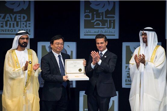 2016年1月18日 ,在阿聯(lián)酋聯(lián)合酋長國(UAE)阿布扎比舉行的扎耶德未來能源獎頒獎儀式上, 比亞迪贏得了大型企業(yè)類別大獎,這也是中國企業(yè)第一次獲此殊榮。如今扎耶德未來能源獎已成功舉辦八屆,作為阿聯(lián)酋的國際性大獎,扎耶德未來能源獎一直在發(fā)掘和鼓勵走在可持續(xù)能源發(fā)展與探索之路上的開拓者們。 五個類別獎項共有九位獲獎者獲得, 其中包括挪威前首相、世界衛(wèi)生組織前總干事格羅•哈萊姆•布倫特(Gro Harlem Brundland)博士。獎項由阿聯(lián)酋王子兼阿聯(lián)酋聯(lián)合酋長國部隊副司令Zayed AI Nahyanp頒布,聯(lián)合國秘書長潘基文及各國政要均有出席此次頒獎儀式。此次頒獎儀式于阿聯(lián)酋可持續(xù)發(fā)展周開展,這也是中東地區(qū)有關可持續(xù)主題最大的集會。