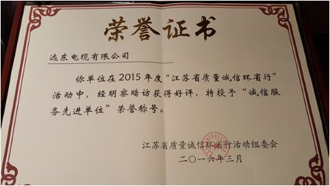 3月15日,2015年度“江蘇質(zhì)量誠信環(huán)省行”活動總結(jié)表彰大會在南京舉行。遠(yuǎn)東智慧能源股份有限公司(簡稱:遠(yuǎn)東智慧能源 股票代碼:600869)全資子公司遠(yuǎn)東電纜有限公司在2015年度“江蘇省質(zhì)量誠信環(huán)省行”活動中,經(jīng)明察暗訪獲得好評,被授予“江蘇省誠信服務(wù)先進(jìn)單位”榮譽稱號,成為江蘇線纜行業(yè)唯一一家獲得該榮譽的企業(yè)。遠(yuǎn)東智慧能源投資人、市場總監(jiān)助理兼遠(yuǎn)東電纜市場總監(jiān)慎葉昌代表公司參會并領(lǐng)獎。