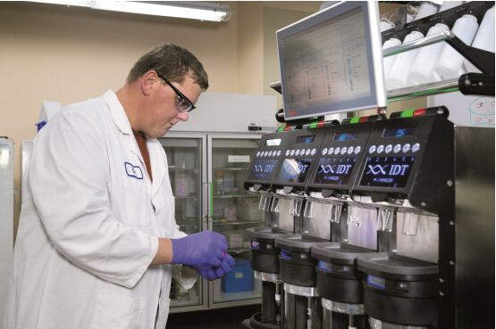 合成核酸鏈被用于基因研究中。寡核苷酸或核酸是由許多核苷酸聚合成的生物大分子化合物。作為全球基因合成領(lǐng)域的領(lǐng)導(dǎo)者,美國Integrated DNA Technologies(IDT)公司在基因合成生產(chǎn)定制寡核苷酸領(lǐng)域提供了廣泛合作和服務(wù)。IDT 公司利用先進(jìn)的 M1 DNA 合成器提高其生產(chǎn)速度、精度,并提升了效率,該合成器采用了基于 PC 和 EtherCAT控制技術(shù)的TwinCAT 3自動化平臺。