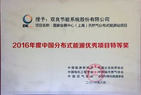 雙良本次獲獎項目國家會展中心位于上海市虹橋商務區(qū)核心區(qū),是全球最大的會展綜合體,是目前世界上最大的冷熱電聯(lián)供系統(tǒng),總制冷量達到24420KW。該項目每年可節(jié)省22870噸標準煤,減排二氧化碳7892噸,實現(xiàn)了國家會展中心節(jié)能減排目標,有效緩解了用能緊張的難題。 近年來,隨著政府對分布式能源發(fā)展的愈發(fā)重視,雙良在這一領域取得了厚積薄發(fā)式的快速發(fā)展,目前,雙良已在全球成功投入運營200多個典型冷熱電聯(lián)供項目,提供300多套冷熱電聯(lián)供系統(tǒng)解決方案,為城市節(jié)約能源、減少霧霾起到了關鍵性作用。 歷屆殊榮回顧: