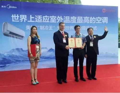 圖示:美的制冷王空調(diào)獲得“世界上適應室外溫度最高的空調(diào)”世界紀錄