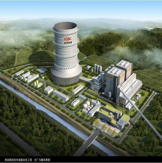 (陜西能源麟北發(fā)電廠煙塔合一鋼結(jié)構(gòu)間冷塔鳥瞰效果圖)