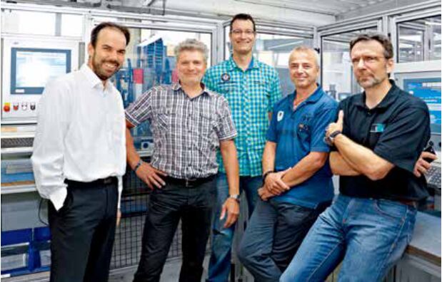 Wilm Schadach,倍福萊茵/魯爾區(qū)辦事處;Achim Ihlefeld,Aumat Maschinenbau 公司技術(shù)總監(jiān);Wilka Schließtechnik 公司鑰匙生產(chǎn)主管 Manuel Krümmel 和 電氣維護經(jīng)理 Mark Straka;以及 AST 公司總經(jīng)理 Wilfried Wengenroth(從左至右) 對于鑰匙行業(yè)及對于專營鑰匙生產(chǎn)的德國費爾貝特的 Wilka Schliestechnik 公司來說,最典型的特點是每天會接到大量定制生產(chǎn)訂單。技術(shù)總監(jiān) Olaf Witte 解釋道:“在某種意義上說,我們的批量生產(chǎn)與單件流生產(chǎn)可以完美結(jié)合于一體。一個訂單可能包含 1000 個相同類型的產(chǎn)品,但每個產(chǎn)品又都是不同的 —直到為了某個備用鑰匙的單一訂單!盬ilka 的生產(chǎn)在結(jié)構(gòu)上具有相應的靈活性,擁有多種特種機床,這些機床是由德國佐林根的 Aumat Maschinenbau 公司與烏帕塔爾的系統(tǒng)集成商 AST 公司共同開發(fā)的。
