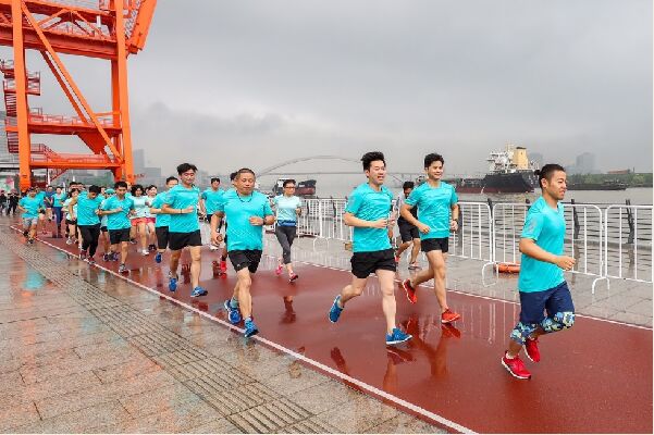 近50名跑者與海洋保護(hù)大使在徐匯濱江大道共同完成了5公里的海洋跑活動(dòng)