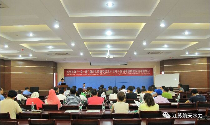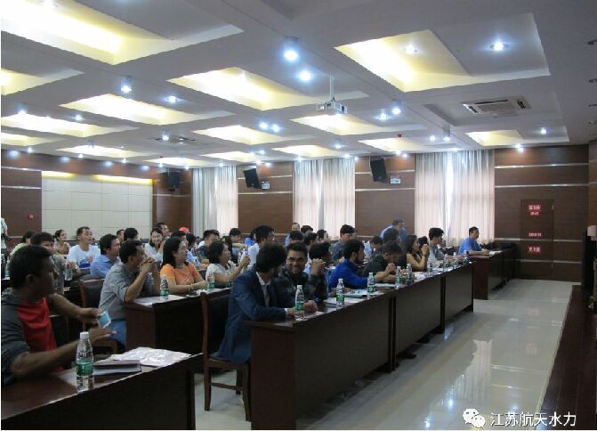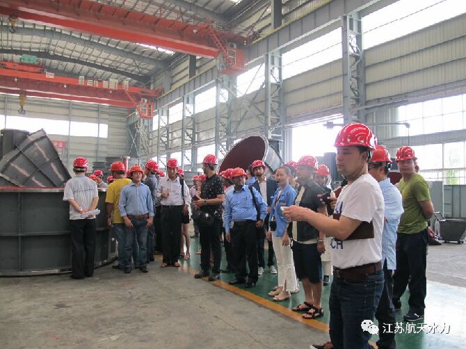 2017年6月30日,“一帶一路”國(guó)家水資源管理及小水電開(kāi)發(fā)研修班的貴賓在水利部杭州農(nóng)電所領(lǐng)導(dǎo)的陪同下,到江蘇航天水力設(shè)備有限公司考察學(xué)習(xí)。此研修班為商務(wù)部援外項(xiàng)目,有來(lái)自朝鮮、阿塞拜疆、阿富汗、亞美尼亞、孟加拉國(guó)、尼泊爾、老撾、多米尼克、蒙古、伊朗、緬甸和埃及等十二個(gè)國(guó)家共四十四位能源領(lǐng)域的官員及技術(shù)人員。其公司黨委書(shū)記薛世寬、銷(xiāo)售副總邵春兵和市場(chǎng)總監(jiān)盧燈權(quán)及國(guó)際貿(mào)易部的員工一起參與接待。