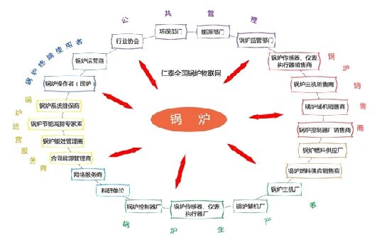 1、鍋爐生態(tài)圈的提出背景 目前國(guó)內(nèi)的傳統(tǒng)鍋爐都是無(wú)物聯(lián)網(wǎng)功能的,單個(gè)運(yùn)行、系統(tǒng)封閉。使用者在運(yùn)營(yíng)中有問(wèn)題難找廠(chǎng)家和專(zhuān)家,人為因素決定鍋爐操作和運(yùn)營(yíng)的好壞,設(shè)備效率、達(dá)標(biāo)運(yùn)行、經(jīng)濟(jì)運(yùn)營(yíng)等受到嚴(yán)重影響。廠(chǎng)家的鍋爐賣(mài)出后,管不了使用,也不知道鍋爐運(yùn)行情況,鍋爐出廠(chǎng)后有如風(fēng)箏斷線(xiàn),售后服務(wù)的成本高、效率低。鍋爐業(yè)界也是各自為陣,封閉分散,業(yè)務(wù)老化且狹窄,競(jìng)爭(zhēng)激烈,同質(zhì)化嚴(yán)重。 南京仁泰法恩電氣有限公司作為工業(yè)鍋爐控制的領(lǐng)軍企業(yè),專(zhuān)注鍋爐控制22年,是中國(guó)工業(yè)鍋爐控制行業(yè)標(biāo)準(zhǔn)的執(zhí)筆起草單位。經(jīng)過(guò)多年對(duì)鍋爐行業(yè)和鍋爐控制的發(fā)展趨勢(shì)的研究,仁泰公司率先提出鍋爐生態(tài)圈的新概念,研發(fā)出仁泰全國(guó)鍋爐物聯(lián)網(wǎng),引領(lǐng)鍋爐控制進(jìn)入網(wǎng)絡(luò)化新時(shí)代。隨著鍋爐生態(tài)圈的構(gòu)建進(jìn)程,上述鍋爐業(yè)界的單個(gè)運(yùn)行的系統(tǒng)性問(wèn)題將會(huì)迎刃而解,并帶來(lái)更多更深和意想不到的新需求、新業(yè)務(wù),給圈內(nèi)企業(yè)帶來(lái)不可估量的機(jī)會(huì),如同現(xiàn)在的手機(jī)支付那樣,這在幾年前還是意想不到的事。 仁泰公司2016年及以前累計(jì)出廠(chǎng)的鍋爐控制器約22萬(wàn)臺(tái),約占2012年我國(guó)在用鍋爐的35%(2012年在用工業(yè)鍋爐為62.4萬(wàn)臺(tái));仁泰2016年當(dāng)年鍋爐廠(chǎng)客戶(hù)達(dá)1000多家,具有全國(guó)型鍋爐物聯(lián)網(wǎng)的巨大資源優(yōu)勢(shì)。 2、鍋爐生態(tài)圈的概念 “鍋爐生態(tài)圈”就是以在用鍋爐為中心,以仁泰全國(guó)鍋爐物聯(lián)網(wǎng)為平臺(tái),將全國(guó)有關(guān)鍋爐的操作者、運(yùn)營(yíng)企業(yè)、生產(chǎn)企業(yè)、銷(xiāo)售企業(yè)、燃料企業(yè)、維保服務(wù)企業(yè)、合同能源管理企業(yè)、鍋爐能效管理商,鍋爐節(jié)能減排專(zhuān)家?guī),以及環(huán)保部門(mén),鍋爐監(jiān)管部門(mén),能源部門(mén),行業(yè)協(xié)會(huì),科研單位等聯(lián)接在一起,形成一個(gè)新的跨界融合、共生共贏、節(jié)能環(huán)保、可持續(xù)發(fā)展的鍋爐產(chǎn)業(yè)生態(tài)圈。 鍋爐生態(tài)圈示意圖: