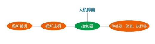 3、傳統(tǒng)鍋爐與生態(tài)圈鍋爐 我們通常所說(shuō)鍋爐,實(shí)際上指的是一個(gè)鍋爐系統(tǒng),而不單單是鍋爐的本體。鍋爐系統(tǒng)通常是由鍋爐主機(jī),鍋爐輔機(jī)(例如燃燒器、水泵、水處理、等等),傳感器,執(zhí)行器和控制器等所組成。控制器是鍋爐系統(tǒng)的中樞。人們?nèi)缫弥仩t的現(xiàn)場(chǎng)信息,必須通過(guò)現(xiàn)場(chǎng)控制器的人機(jī)界面。 傳統(tǒng)鍋爐圖示: